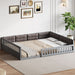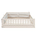Wood Full Size Upholstered Platform Bed With Guardrail And Pillow - Beige