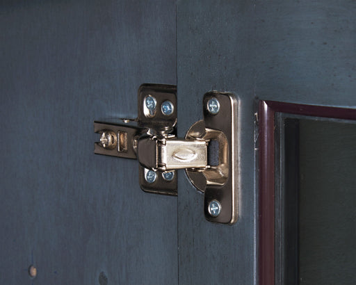 LegendsDimensions: 43 inches wide x 2 inches deep x 38 inches high Made of Poplar Solids and Okoume Veneers Orchard Grey Finish Beveled Glass No Assembly...