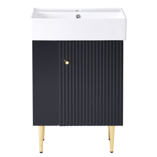 Home EssentialsCompact Contemporary Design: vanity cabinet with a sleek profile; perfect for small bathrooms and limited spaces Seamless Ceramic Sink Surface: ce...