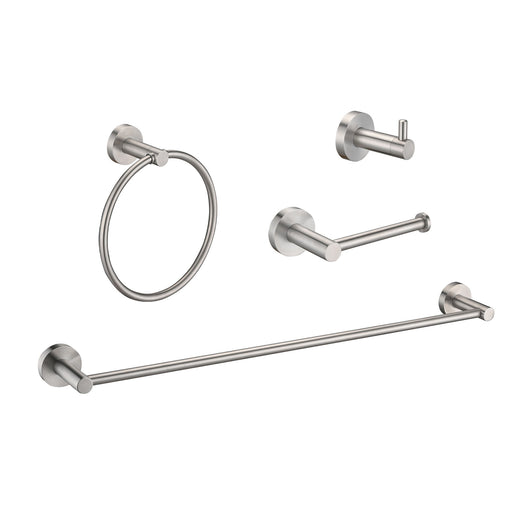 Home EssentialsComplete Set: Includes 22.7-inch towel bar, toilet paper holder, towel ring, and hook for a coordinated look. Elegant Finish: Features a brushed n...