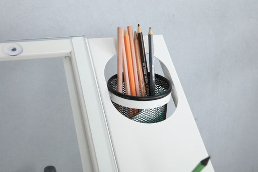 Home EssentialsAdjustable Tilted Glass Desktop: 5mm tempered glass top can be tilted from 0 to 75 for convenience. Ample Storage Space: Features two large meta...