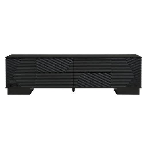 Home EssentialsUnique Media Console Design: Three-dimensional surface with open shelves and drawers enhances visual appeal and provides functional storage for li...