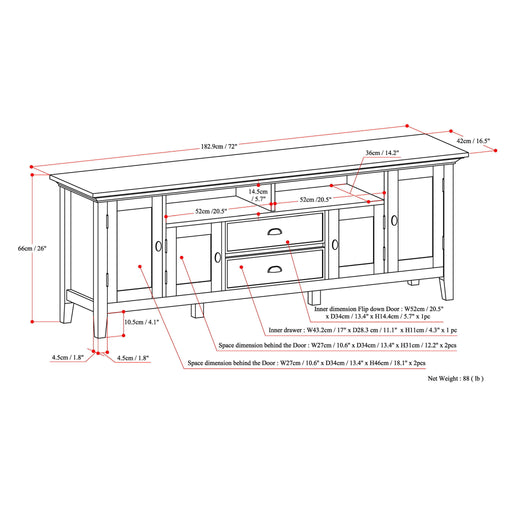 Simpli-HomeHandcrafted with care using the finest quality solid wood Features two (2) drawers; two (2) door side cabinets with tempered glass window pane doo...