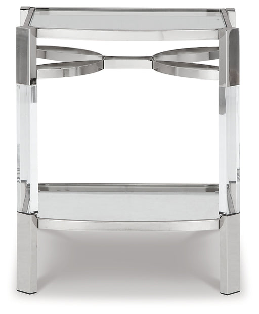 Signature Design by Ashley®If you love the idea of total transparency, this accent table is surely a sight for sore eyes. Crafted of clear acrylic, the glass top and open gla...