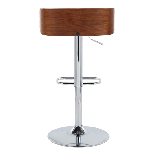 Lumi SourceDesign and Style: The Pino Adjustable Barstool by LumiSource showcases a polished bent wood back and upholstered seat, exuding a mid-century mode...