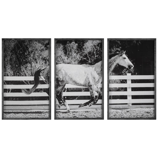 UttermostThe Perfect Triptych For Equine Lovers, These Exclusive Prints Are Encased In Glass And Surrounded By Wooden Frames In A Black Finish With Ivory Ce...