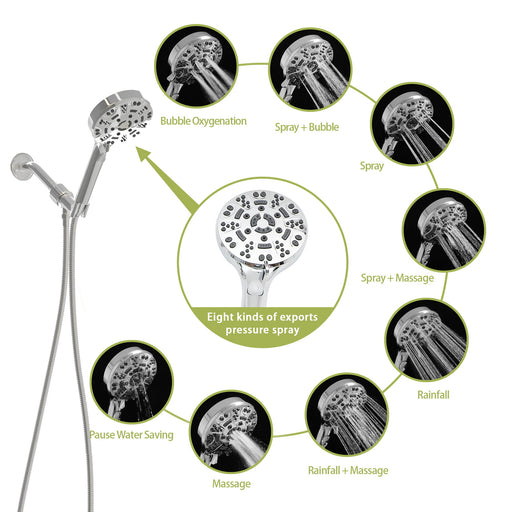 Daily NestVersatile Settings: Enjoy 8 different settings including rain, massage, and spray for a customizable shower experience. Durable Hose: The 59-inch ...
