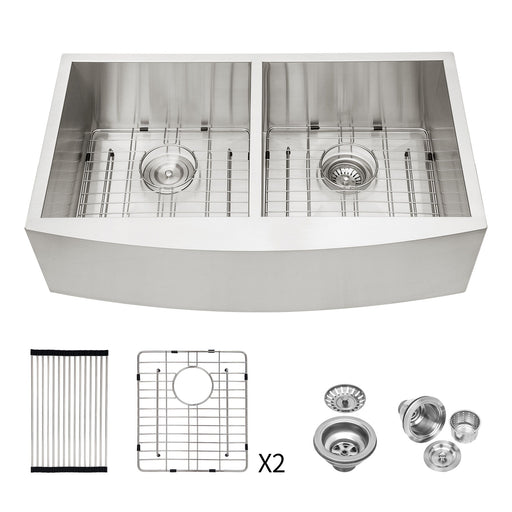 Original price $589.00Original price $589.00 - Original price $589.00Original price $589.00Current price $519.00$519.00 - $519.00Current price $519.00Double Bowl Farmhouse Sink, Stainless Steel Apron Front Kitchen Sink 16 Gauge - Brushed Nickel