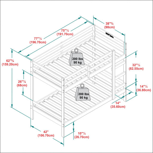 Hearth and HavenSturdy Construction: Built with solid pine wood and MDF for long-lasting strength and high load capacity up to 400lb per bed Versatile Usage: Conv...