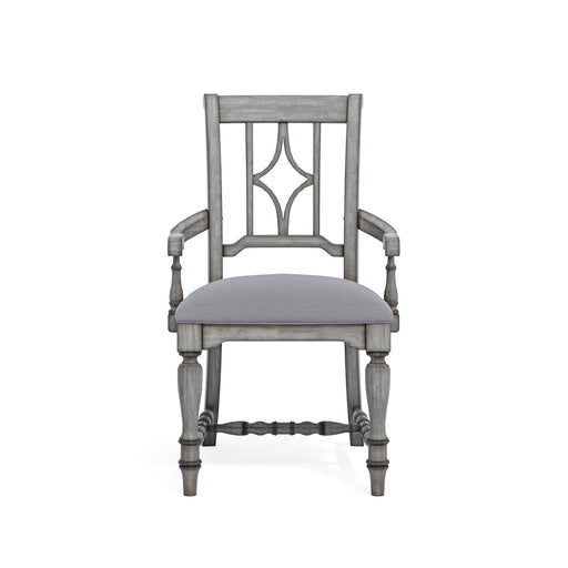 FlexsteelShabby chic design with a bit of vintage. The Plymouth upholstered arm dining chair boasts a shabby chic design with an overall graywash finish. Ac...