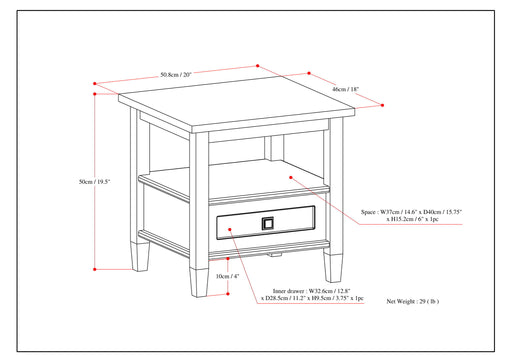 Simpli-HomeDIMENSIONS: 24" D x 14" W x 20" H Handcrafted with care using the finest quality solid wood Hand-finished with a Brunette Brown stain and a protec...