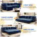 3 In 1 Pull Out Sofa Bed, Convertible Sleeper Sofa Bed, King Size Sofa Bed, Chaise Lounge, Velvet T3 Seater Sofa With Movable Ottoman, Tufted Design - Blue