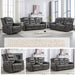 3 Seater Home Theater Recliner Manual Recliner Chair With Two Built-In Cup Holders For Living Room - Gray