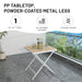 - All-Weather Durability: Chair & tabletop: high-quality polypropylene (waterproof, UV-resistant for over 17,520hrs outdoor use, mildew-resistant). Powder-coated metal legs: resist wind, rain, humidity.