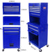 6 Drawer Lockable Tool Cabinet On Wheelsб Steel Rolling Tool Chest With Detachable Toolbox, 2 In 1 Garage Workshop Storage Organizer With 4 Universal Casters - Blue