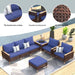 7 Pieces Patio, Wicker Dining Set With Removable Cushions Cotton And Rattan - Blue