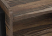 - Design and Finish: This 2-tier accent table features a rectangular shape with a reclaimed wood-look finish. It includes a tray-style tabletop with raised edges on the sides and back, and rounded front edges for added safety and style.