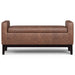 - Upholstered with a durable Distressed Saddle Brown Vegan Faux Leather