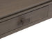 - Transitional Design includes clean angle edged table top, square, slightly tapered legs and rectangular Antique Bronze knobs
