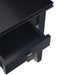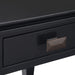 • Features 1 functional drawer with metal drawer glides and rectangular antique bronze handles.