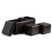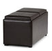 - Features a 5 piece ottoman set with 1 large rectangular ottoman and 2 smaller ottomans, large interior storage space, two flip over serving trays