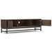 - Features 2 doors opening to spacious storage compartments, and 1 large open area for your media devices