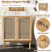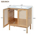 Bathroom Vanity Crafted From Natural Materials, Featuring Handmade Rattan Doors And Soft-Closing Mechanisms - Light Brown