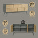 - Server Features: The side server boasts a 2-tone finish with KD legs, wood, composite wood, and veneer construction. It includes three doors with shelves and a weight limit of 100lbs on top and 60lbs per shelf.