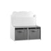 Bookshelf With Storage Bins, Bookcase With Book Display Shelf And 2 Bins, Cute Bear Shaped Backboard, Toy Organizer - White