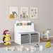 - Multifunctional Design for Books & Toys: Features a top book display shelf and two spacious fabric bins for easy organization of books, toys, and games.