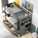Twin Over Full / Twin Bunk Bed, Convertible Bottom Bed, Storage Shelves And Drawers - Gray
