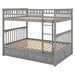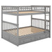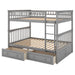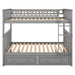 Full Over Full Bunk Bed With Drawers, Convertible Design - Gray