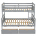 Twin Over Full Bunk Bed With Ladder, 2 Storage Drawers, Safety Guardrail - Gray