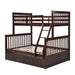 Wooden Twin Over Full Bunk Bed With Storage Drawers Ladder And Safety Guard Rails - Dark Brown