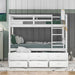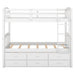 Twin Over Twin Bunk Bed With Trundle And Drawers With Arched Headboard And Footboard - White