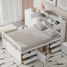 Full Size Captain Platform Bed Frame With Bookcase Headboard, Four Drawers, Storage Shelves - White