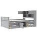 Full Size Captain Platform Bed Frame With Bookcase Headboard, Four Drawers, Storage Shelves - Gray