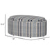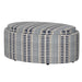 • The CASEY reversible tray top storage ottoman steps up to the plate in cozy chenille fabric and understated flair. The classic contemporary frame is updated with flared arms accentuated by welting for a subtle saddle shape. Pillow-shaped back cushions blend the casual appeal of a scatterback with the tidiness of a more traditional box cushion. Upholstered in soft light gray with flecks of dark gray for added depth, this living room collection includes a sofa, loveseat, and chair, accompanied by an accent oval ottoman featuring hidden castors. Flip the top from cushioned upholstery to a dark wood tray to discover hidden storage. Complete the look by tossing on the included accent pillows in a blue and gray geometric print and a textured stripe in shades of navy to make every moment a home run in comfort.