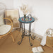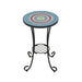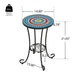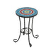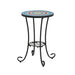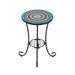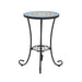 Vibrant Patio Side Table With Shelf, Floral Design Ceramic Tile - Blue / Black