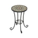 Ceramic Tile And Iron Patio Side Table With Shelf - Brown / Black