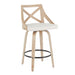 • Stylish Design: The Charlotte Counter Stool enhances any dining area with its elegant design, featuring a distinctive X-shaped accent on the backrest. Its white washed wood and fabric upholstery blend seamlessly to offer a transitional look that complements both traditional and farmhouse styles.