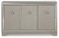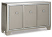 Reflect your love for contemporary style with this accent cabinet. It features a mirrored top and beveled mirror accents, adding both light and a touch of glam to your space. Decorated with faux crystal and chrome-tone pulls, the textured silvertone door fronts open to reveal adjustable shelving to meet all your storage needs.