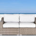 • Durable Construction: Built with a powder-coated aluminum frame and wrapped in woven wicker, this loveseat is designed for durability and style, providing coastal vibes suitable for any porch or patio setting.