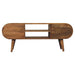 - Features: media unit, solid mango wood, handcrafted, 4 drawers, 2 shelves, living room furniture, curved, rounded edges