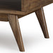 - Features one drawer with cut out drawer pull, side mounted metal drawer glides and four angled legs