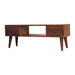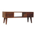 - Features: solid wood, mango wood, chestnut, coffee table, 2 drawers, shiny brass knobs, open slot, living room, nordic