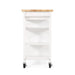 - Durable Rubberwood Top: Crafted from eco-friendly rubberwood, this cart offers strength and a stunning natural-grain finish, adding warmth and elegance to your kitchen space.