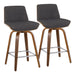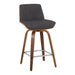 Corazza - Mid-Century Modern Fixed Height Counter Stool & Swivel And Square Footrest (Set of 2) - Walnut / Charcoal