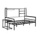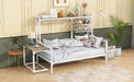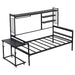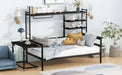 Maximize both style and functionality with this Metal Daybed, designed to meet the needs of modern living. Whether you're creating a cozy reading nook, a guest bed, or an efficient workspace, this versatile daybed has it all. Featuring a movable desk, metal grids, multiple shelves, and a clothes hanger, it combines industrial charm with practical storage solutions to enhance any room in your home.
