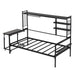 Full Size Daybed With Movable Desk, Grid, Shelves And Clothes Hanger - Black